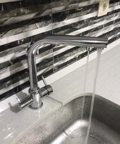 Su Arıtma Cihazı içierisinde kendine ait musluğu kullanmak isterseniz Tezgahınızda delik açılması gerekmektedir. 3 Yollu Musluk ile tezgahınızda herhangi bir delik açılmasına gerek yoktur. Mevcut muslugunuz yerinden sökülerek bu musluğu yerine takmanız sıcak su soğuk su ve arıtılmış suyun tek bir musluk üzerinden gelmesi mümkün olacaktır.